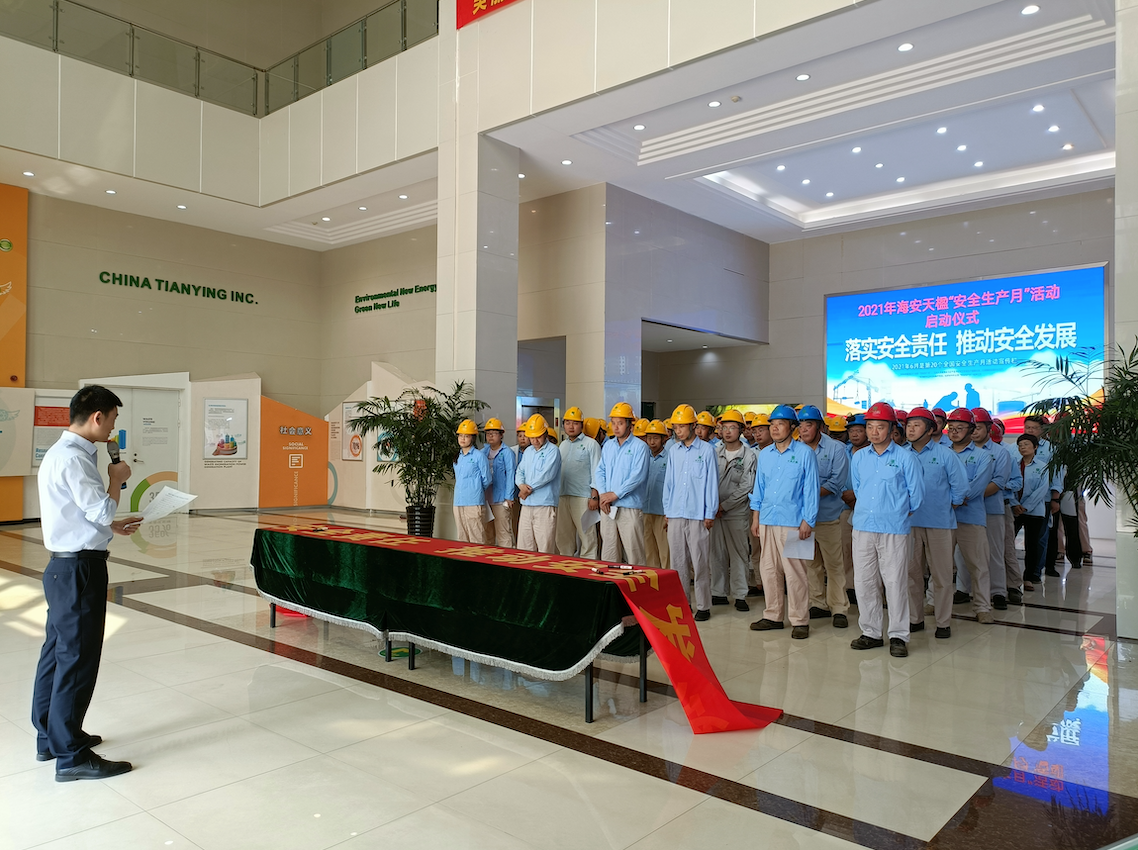 今年6月是第20個全國“安全生產(chǎn)月”,2021年安全生產(chǎn)月的主題是“落實安全責(zé)任、推動安全發(fā)展”。為積極響應(yīng)貫徹總公司“安全生產(chǎn)月”活動的工作要求,推進落實安全生產(chǎn)主體責(zé)任,提升全員安全生產(chǎn)意識,維護公司安全生產(chǎn)穩(wěn)定形勢,海安天楹環(huán)保能源有限公司于2021年6月7日上午9點在主廠房一樓大廳舉行“安全生產(chǎn)月”啟動儀式暨動員大會。