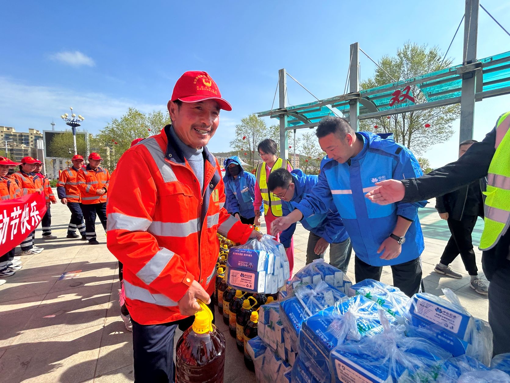 在“五一”國際勞動(dòng)節(jié)來臨之際,寧夏穩(wěn)恩石油有限公司帶著慰問禮品,給西吉楹環(huán)全體環(huán)衛(wèi)工人送來節(jié)日的問候,向他們表達(dá)崇高的敬意,感謝他們用大愛傳遞溫情、用溫情點(diǎn)亮城市的奉獻(xiàn)精神。