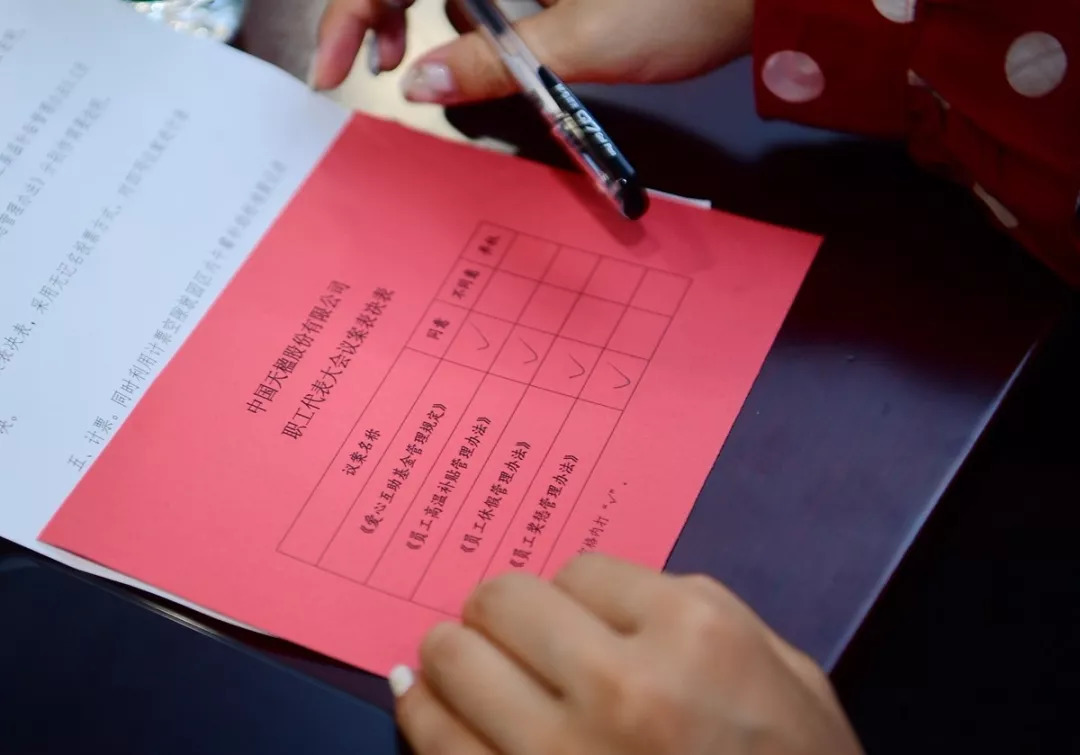 公司工會職工代表們還聽取了《愛心互助基金管理規(guī)定》、《員工高溫補貼管理辦法》、《員工休假管理辦法》、《員工獎懲管理辦法》等細則的解讀說明。經(jīng)過現(xiàn)場提問、情況答疑、舉手表決、民主填寫投下《議案表決票》等環(huán)節(jié),二屆二次職代會開出質(zhì)量、開出實效。